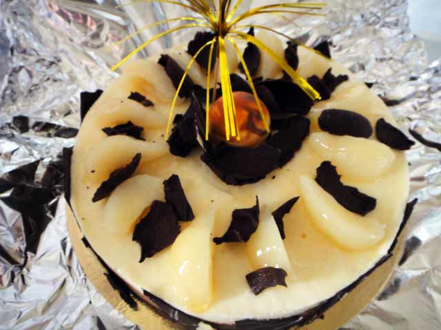 amuse gueuleUne mousse aux fruits de la passion, recouverte d'une décoration d'assortiments de fruits exotiques et de saison.